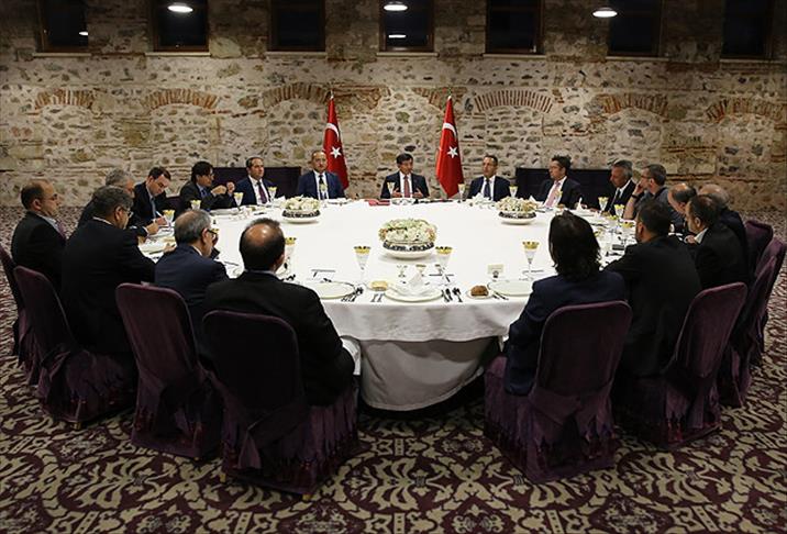 Davutoğlu, burada bazı gazetelerin genel yayın yönetmenleriyle akşam yemeğinde bir araya geldi. Basına kapalı toplantı yaklaşık 2,5 saat sürdü.