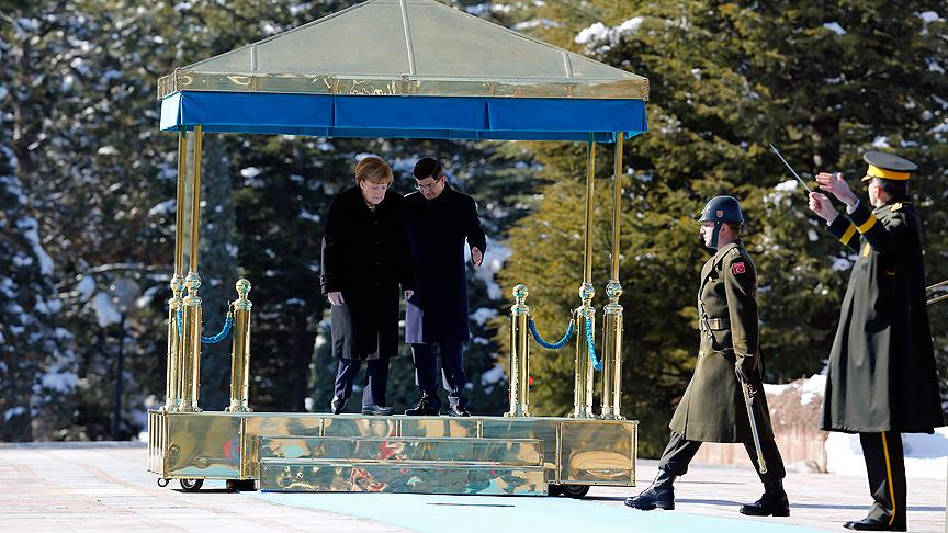 Ankara temaslarına Anıtkabir'i ziyaret ederek başlayan Merkel, Atatürk'ün mozolesine çelenk bırakarak saygı duruşunda bulundu.