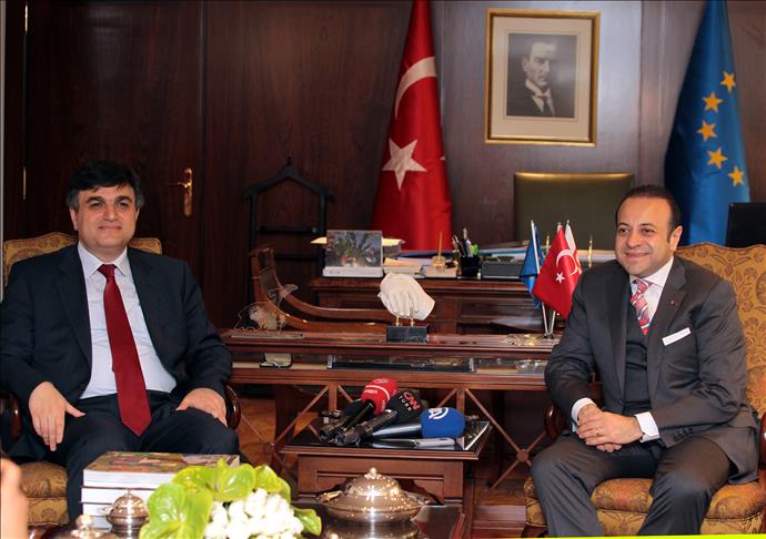 Avrupa Birliği (AB) Bakanı ve Başmüzakereci Egemen Bağış, Yükseköğretim Kurulu (YÖK) Başkanı Gökhan Çetinsaya'yı bakanlıktaki makamında kabul etti.