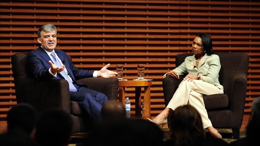 ABD'nin eski dışişleri bakanı Condoleezza Rice'ın Mısır seçimlerini hatırlatarak, "Mısır demokrasiyi mi seçecek yoksa İslam'ı mı?" sorusunu Abdullah Gül, "Türkiye Müslüman bir ülke, tarihte İslam milletlerini yönetmiş bir ülke. Kimliği ortada. Hem inancının gereklerini yerine getiriyor hem de diğer taraftan Avrupa Birliği'ne tam üyelik çalışmalarını sürdürüyor. Yeni bir anayasa ile bazı engelleri de aşmış olacak. Yakın zamanda Müslüman topluluklarda demokrasi örneğinin çoğaldığını göreceksiniz" diye yanıtladı.