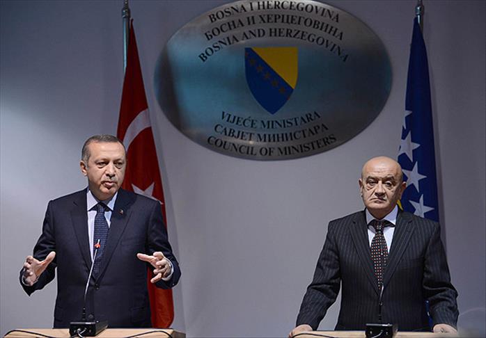 Başbakan Erdoğan, ''Bütün gayretimiz bir, beraber, bütün içerisinde güçlü bir Bosna Hersek'i görebilmek. Artık birbirine şüpheyle bakan bir Bosna Hersek halkı olmamalı, güvenle bakan bir Bosna Hersek halkı olmalı. Bosna Hersek'in bütünlüğü üzerinde de kimse tereddüt etmemeli'' dedi.