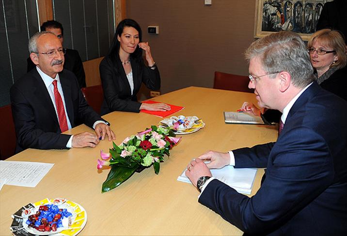 Cumhuriyet Halk Partisi (CHP) Genel Başkanı Kemal Kılıçdaroğlu, Brüksel temasları çerçevesinde Avrupa Komisyonu'nun Genişlemeden Sorumlu Üyesi Stefan Füle ve Avrupa Parlamentosu (AP) Başkanı Martin Schulz ile görüştü.