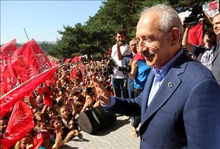 "Kılıçdaroğlu o şantajlar neticesinde CHP'nin başına geldi, kaset genel başkanı oldu" şeklinde konuşan Başbakan Erdoğan, "Sayın Baykal'ın başına olaylar geldi. Sayın Baykal hala başka yerlerde dolaşıyor. Baykal başka yerde dolaşma, bu işin üstadı, piri bunlar ve sana bu kumpası kurdular. Ondan sonra senin ziyaretine geldi. Ziyarete geldikten sonra 'Aday olmayacağım' dedi, 24 saat geçmeden bu Kılıçdaroğlu CHP'nin başına aday oldu. Bunda yalan çok, bunda dürüstlük yok. Ben işte İzmirli kardeşlerime sesleniyorum. Bunların peşinden artık gitmeyi bırakın. Düzgün siyaset, doğru siyaset, buna sahip çıkalım" diye konuştu.