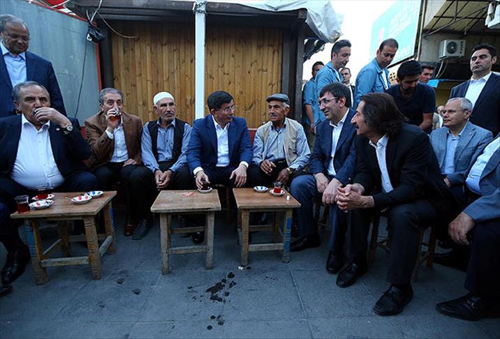 Başbakan Davutoğlu, cami önündeki bir çay ocağı işletmecisinin daveti üzerine de burada vatandaşlarla birlikte çay içti.