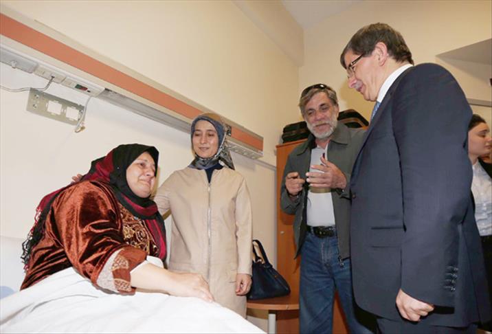 Yaralılarla Ankara'da tedavi gördükleri Yıldırım Beyazıt Üniversitesi Tıp Fakültesi Atatürk Eğitim ve Araştırma Hastanesi'nde bir araya gelen Bakan Davutoğlu ve eşi Sare Davutoğlu'nun, Mona el Şavva'yı ziyaretleri sırasında duygulu anlar yaşandı.