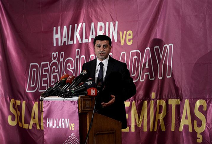 Daha sonra Çiçek'in ayrılmasının ardından Baluken yaptığı açıklamada, Demirtaş'ı Cumhurbaşkanı adayı olarak Türkiye halklarının, Türkiye halkının huzuruna getirdiklerini belirterek, "Türkiye halklarının önüne bir üçüncü yolu, barışa, demokrasiye özgürlükçü anlayışa hizmet edecek bir alternatif yolu getirmenin onuru içerisindeyiz" dedi.