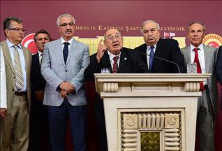 "İmza toplayabilirler, görüş beyan edebilirler. Demokrasilerde bunları olağan kabul etmek lazım. Bizi AKP'den ayıran veya diğer partilerden ayıran temel fark budur. Biz, demokrasiye, hukukun üstünlüğüne inanıyoruz. Genel başkan adayları çıkabilir, demokratik yollarla yarışacağız. Bu gayet doğal bir şey. Gidin bunun benzerini pek çok demokratik ülkede görebilirsiniz. Bu ülkeye demokrasiyi getiren bir parti olarak bizim bu tür olayları olağan karşılamamız gerekiyor. 'Sanki AKP'de olmadı bizde oldu' diye sanki bizde bir kriz var. Bir kriz yok arkadaşlar. Normal, demokratik yollarla yarış yapılacak. Kurultayımızı toplayacağız, orada beraber. Kim galip gelirse de elimizi kaldıracağız, 'Şu galiptir' diyeceğiz ve yolumuza devam edeceğiz. Bütün hedef, 2015 seçimlerinde daha başarılı bir performans çıkartmak."