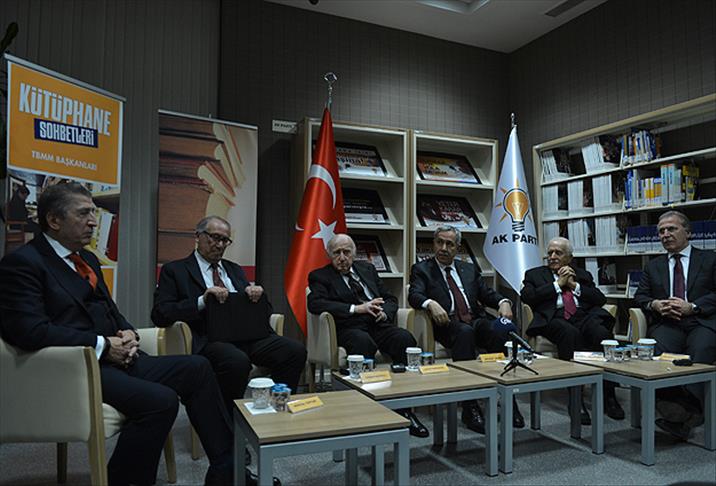 AK Parti AR-GE Başkanlığı'na bağlı AK Parti Kütüphanesi'nde, daha önce TBMM Başkanlığı yapmış isimlerin katılımıyla ''Kütüphane Sohbetleri'' düzenlendi. Etkinliğe, Başbakan Yardımcısı Bülent Arınç, AK Parti Genel Başkan Yardımcısı Mehmet Ali Şahin, Köksal Toptan, Ferruh Bozbeyli, Cahit Karakaş ve İsmet Kaya Erdem katıldı.