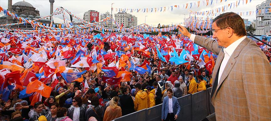"Kimlerin terörle el ele tutuştuğunu görüyor musunuz" diye soran Davutoğlu, AK Parti'ye karşı bir şer, yıkım ve tahrip cephesi kurulduğunu söyledi. Muhalefet partilerinin, şimdiden koalisyon hesabı yaptığını ifade eden Davutoğlu, sözlerini şöyle sürdürdü: