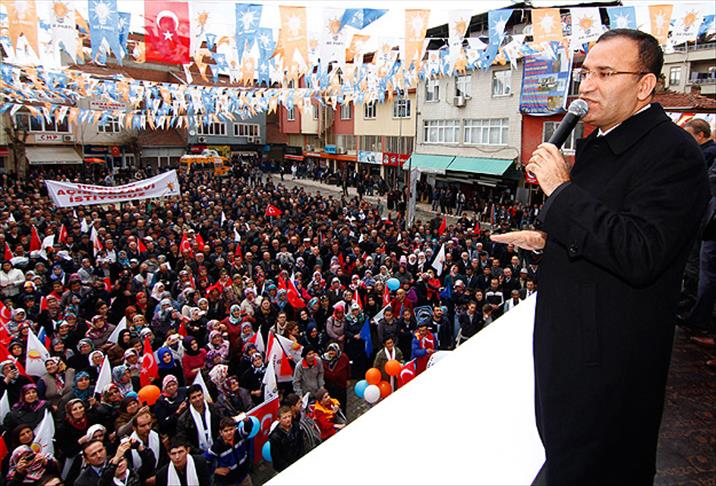 Adalet Bakanı Bekir Bozdağ, Taşova ilçesinde adliye ziyaretinin ardından Taşova Meydanı'nda parti otobüsü üzerinden halka hitap etti.