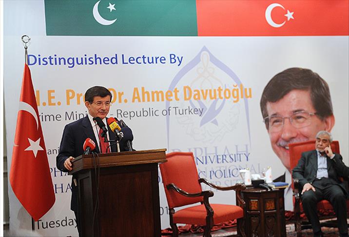Davutoğlu, İslamabad'daki Serena Otel'de, Refah Üniversitesi tarafından düzenlenen konferansta yaptığı konuşmasına başlarken, "bir başbakan olarak değil, bir profesör, bir ilim öğrencisi olarak" konferansta bulunduğunu ifade etti.