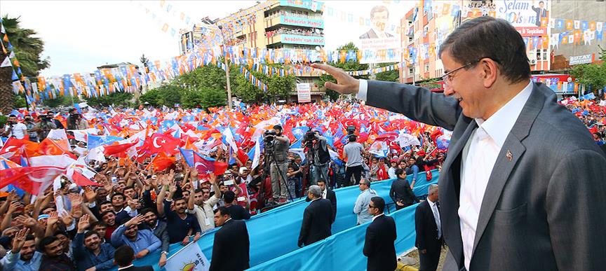 Güney Doğu ve Doğu Anadolu'da son 4 gündür her ile gittiğini ve geri kalan illere de giderek aynı çağrıyı yapacağını bildiren Davutoğlu, "Herkes kararını vermeli. Ya silah, ya barış ve çözüm. Silahları terk edin diyoruz, söz veriyorlar, terk etmiyorlar. Neden? Aynen tek parti CHP döneminde olduğu gibi önce Kürt kardeşlerim üzerinde, sonra da Türkiye üzerinde baskı kurmaya kalkıyorlar" diye konuştu.