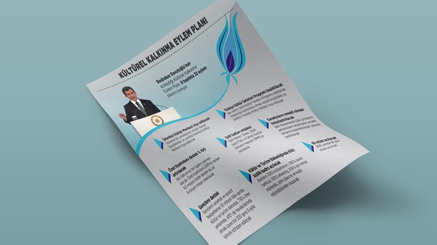 Başbakan Ahmet Davutoğlu, Ankara Palas'ta gerçekleştirilen "Kültürel Kalkınma İnsan Şehir Kültür Medeniyet" programında, "Kültürel Kalkınma Eylem Planı"nı açıkladı.