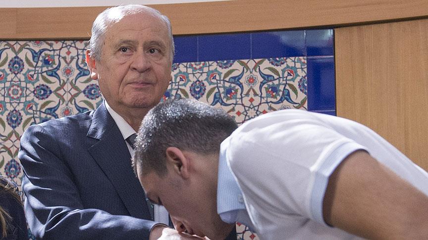 Bahçeli, parti genel merkez binasında partililerle bayramlaştı. Bayramlaşmanın ardından partililere hitap eden Bahçeli, Kurban Bayramı'nın İslam coğrafyasında yaşanan büyük acı ve üzüntü ile idrak edildiğini söyledi.