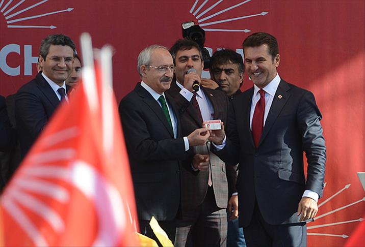 CHP Genel Başkanı Kemal Kılıçdaroğlu, Parti Meclisi (PM) tarafından hakkındaki yüksek disiplin kararı kaldırılan Şişli Belediye Başkanı Mustafa Sarıgül'e parti kimlik kartını verdi.