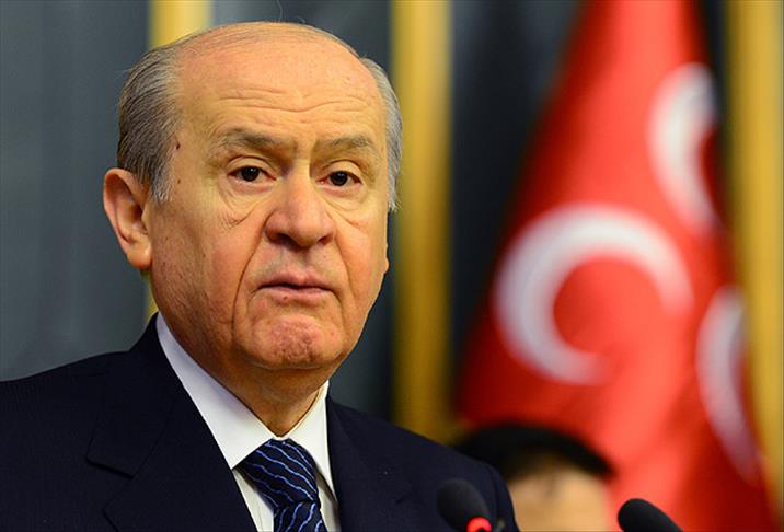 Bahçeli, ''Buna göz yuman, destek sağlayan, kolaylık gösteren, ortam açan kim olursa olsun, isminin başında hangi sıfat yer alırsa alsın ihanete kasten ve bilerek tam teşebbüsten çanak tutmakla suçlanacaktır. İmralı'dan Kandil'e kadar, AKP ve diğerlerini de içine alan ihanet kuşağının kara yüzlüleri şimdilik rahat olsalar da günü geldiğinde bugünlerin hesabını faiziyle birlikte vermek durumunda kalacaklardır'' dedi.