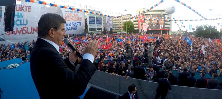 Davutoğlu, AK Parti'nin ilk coşkulu mitinglerini Samsun'da yaptığını anımsatarak, "Cumhurbaşkanımıza sahip çıktınız. Şimdi de 7 Haziran'da bize sahip çıkmaya var mısınız? 7 Haziran'da yeni bir demokrasi destanı yazmaya var mısınız?" sözlerine meydandakiler ise "evet" yanıtını verdi.