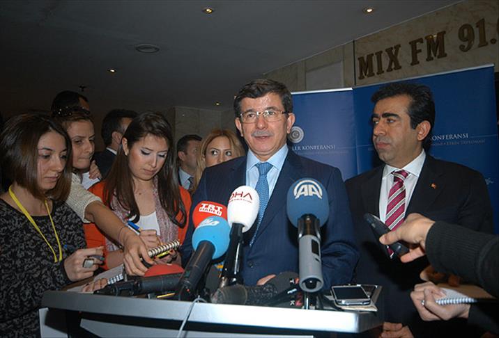 Davutoğlu, Ankara'daki Büyükelçiler Konferansı'ndan sonra Şanlıurfa, Adana ve ardından Mersin'deki toplantıya katıldıklarını söyledi. Şanlıurfa'da Suriye'nin komşuları ve Birleşmiş Milletler Mülteciler Yüksek Komiseri Antonio Guterres ile bir toplantı gerçekleştirdiklerini anımsatan Davutoğlu, ''Cenevre-2 Konferansı öncesi yoğun bir diplomatik trafik içindesiniz. Telefon görüşmelerinizle ilgili bilgi verir misiniz?" şeklindeki soru üzerine şunları söyledi: