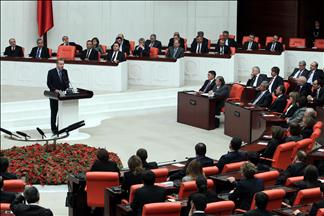 ''Sözüm ona ateşkesin sağlandığı günden bu yana şiddetli çatışmalar devam etmekte, şehirler bombalanmakta ve sivil insanlar daha fazla öldürülmekte. Göç de hızlanmaktadır. Türkiye'de neredeyse 40 bini geçti. Diğer ülkelerde Ürdün'de, başka ülkelerde aynı şekilde. Herkes kaçmakta. Daha önce de söyledik, Suriye'yi bu günlerde görmek istemezdik ama maalesef Suriye o günlere gelmiştir. Gördüğüm kadarıyla bundan sonra ne yapılsa çok geçtir ve yapılan her şey de çok azdır. Bunu söylemekten gerçekten çok büyük üzüntü duyuyorum ama işler bu noktaya gelmeden bunları söylediğimiz için bugün bunları söylüyorum. Artık meşruiyeti tamamen kaybolmuş bir yönetim var. Kendi halkını bu kadar bombaladıktan ve bu kadar ölümlerden sonra çok süratli bir şekilde yapılacak şey halkın iradesinin açık bir şekilde ortaya konacağı yeni yönetimdir.''