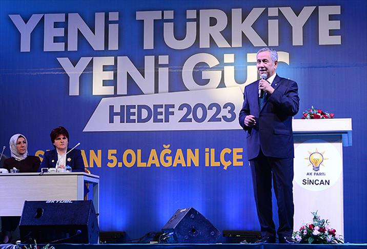 Arınç, Sincan Kapalı Spor Salonu'nda düzenlenen AK Parti Sincan İlçe Kongresi'nde yaptığı konuşmada, MHP Genel Başkan Yardımcısı Oktay Vural’ın eşinin cenaze töreninde bulunduğu için ve Yenimahalle kongresine katılanların bu kongreye de gelebilmesi için programa geç geldiğini belirterek katılanlardan özür diledi.
