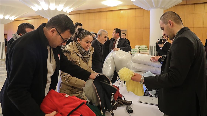 AFAD işbirliğiyle ve TBMM Acil Durum Yönetim Merkezi tarafından toplanan yardımlar Meclis tören salonunun alt katında toplanıyor.