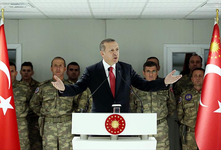 Cumhurbaşkanı Recep Tayyip Erdoğan, "Suriye'nin Kobani şehrinden Türkiye'ye sığınanlara da en başta kucak açan, onları dostça, kardeşçe kucaklayan yine Türk Silahlı Kuvvetlerimiz olmuştur. Bazı densizler çıkıp Mehmetçiğe taş atıyor olabilirler. Bazı alçaklar çıkıp Mehmetçiğe kurşun sıkıyor olabilirler. Barış için görev yaptığımız yerlerde, bazıları çıkıp düşmanca tavırlar sergiliyor olabilirler. Dünyanın en büyük ve en kadim ordularından biri olan Türk Silahlı Kuvvetleri, bu insanlık dışı saldırıların hiçbirine boyun eğmez, hiçbirinden etkilenmez ve vazifesini kararlılıkla yerine getirme idealinden asla vazgeçmez" dedi.