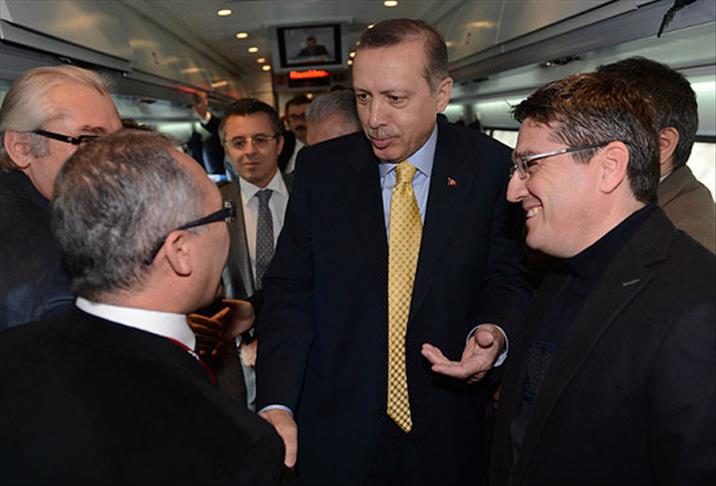 Başbakan Recep Tayyip Erdoğan, Eskişehir-Konya Yüksek Hızlı Tren (YHT) hattının açılışı için Yüksek Hızlı Tren ile Eskişehir'e giderken gazetecilerin İsrail'in Mavi Marmara Baskını nedeniyle Türkiye'den özür dilemesine ilişkin sorularını yanıtladı.
