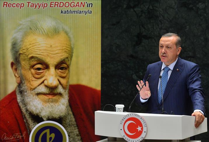 Erdoğan, çok sık hatırlattığı Necip Fazıl'a ait Sakarya Türküsü'ndeki "Öz yurdunda garipsin, vatanında parya" dizesini okuyarak, şöyle konuştu: