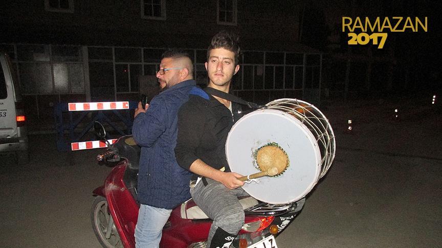 İlçenin büyüdüğünü belirten davulcu Mustafa Akyol (40) da "Ramazan davulculuğu geleneğini yıllardır sürdürüyoruz. İlçemiz büyüdüğü için haliyle her yere yetişemiyoruz. Şehrin her tarafına kısa sürede yaya ulaşmak zor oluyor. Motosikletin arkasında birimiz davulu çalarken öndeki arkadaşımız da motoru kullanarak sokakları dolaşmamızı sağlıyor. Böylece daha fazla vatandaşa ulaşıyoruz." şeklinde konuştu.