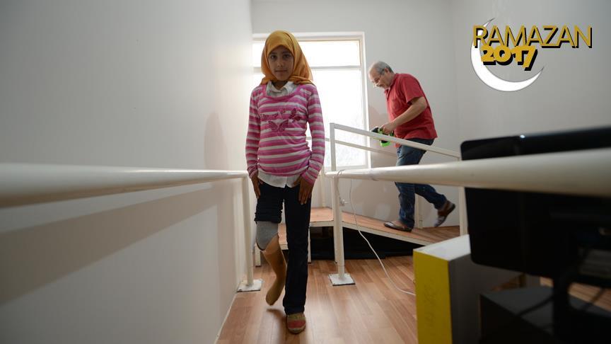 Suriye'de babası ve ablasının öldüğü rejim güçlerinin Halep'e düzenlediği bombalı saldırıdan yaralı kurtulan 11 yaşındaki Fıtta Muhammet, dizinin altından kesilen sağ ayağı için Antalyalı yardımseverlerin desteğiyle takılan protezi sayesinde bayrama yürüyerek girmenin sevincini yaşıyor.