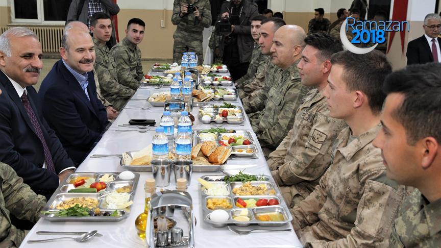 İçişleri Bakanı Süleyman Soylu, Van'daki ziyaretlerinin ardından helikopterle geldiği Başkale ilçesi Albayrak 3. Hudut Piyade Birliğinde askerlerle sahur yaptı.