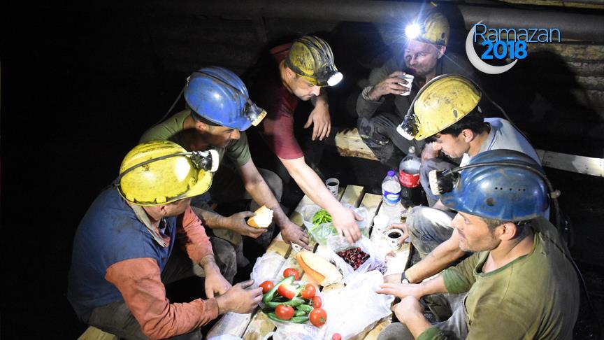 Sercan Öztürk (35) ise madenciliğin dünyanın en zor mesleklerinden biri olduğuna dikkati çekerek, "Ramazan ayınını ilk sahurunu yapıyoruz. Arkadaşlarımızla kardeşlik ortamında yapıyoruz. Hayırlısıyla da devamını getireceğiz." dedi.