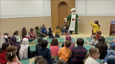 Almanya'nın başkenti Berlin'de çocuklar camilerde düzenlenen iftar programında Nasreddin Hoca gösterisi ve geleneksel Hacivat ve Karagöz gölge oyunlarıyla eğleniyor.