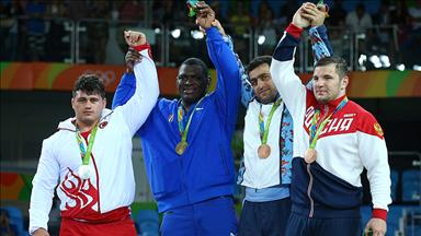 Brezilya'nın Rio de Janeiro kentindeki Riocentro'da gerçekleştirilen halter müsabakalarında, erkekler 105 kiloda madalyalar dağıtıldı.