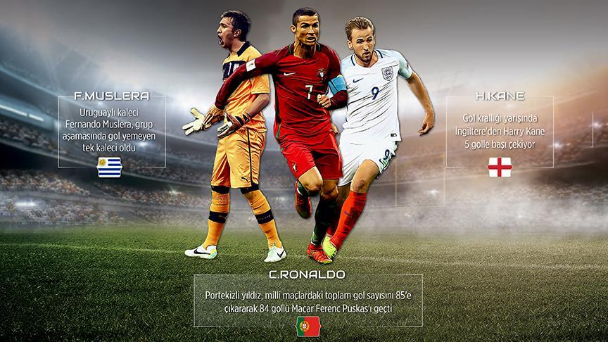 Ronaldo ile Kane ise turnuvada hat-trick yapma başarısını gösteren oyuncular olarak öne çıkıyor.
