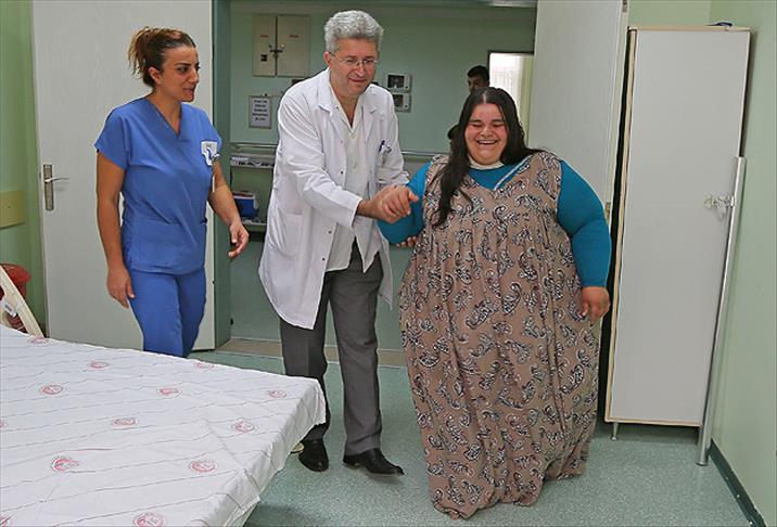 Fazla kiloları nedeniyle İzmir'in Torbalı ilçesindeki evine kapanan ve 300 kiloyu aşarak, yürüyüp hareket edemez hale gelen 19 yaşındaki Emel Ayaf, obez ambulansı ile kaldırıldığı Tepecik Eğitim ve Araştırma Hastanesi'ne bağlı palyatif bakım merkezindeki tedavisi sayesinde 20 günde 6 kilo verdi ve yürümeye başladı.