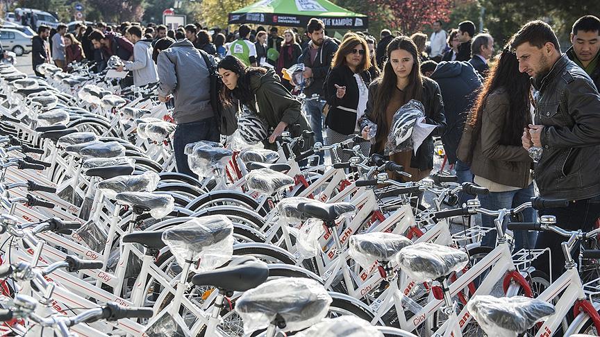 Sağlık Bakanlığınca "Aktif Kampüs Projesi" kapsamında Hacettepe Üniversitesine hibe edilen bisikletlerden 160'ı öğrencilere verildi.