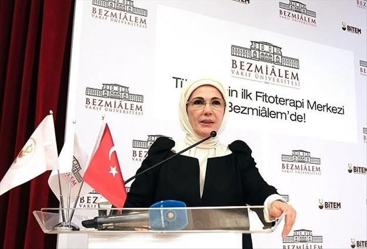 Cumhurbaşkanı Recep Tayyip Erdoğan'ın eşi Emine Erdoğan, Bezmialem Vakıf Üniversitesi Fitoterapi Eğitim Araştırma ve Uygulama Merkezinin, dünyada 100 milyar dolara yaklaşan bitkisel ilaç pazarına yeni adımlar atabilmek için girişimcileri cesaretlendireceğini belirterek, "İnsanlar bitkisel tedavileri kullanırken güven duyabilecekleri adreslere kavuşacak" dedi.