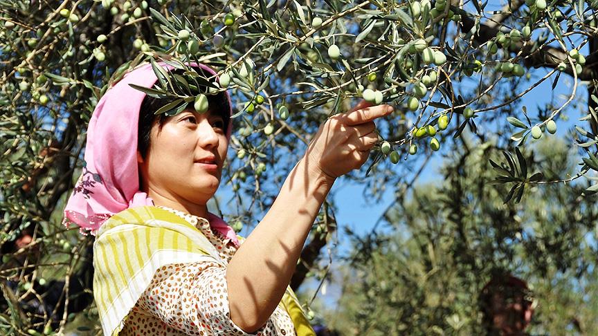 Başlarına zeytin dalından yapılmış taçları ve işçilerin kullandığı tülbentleri takan, yöresel giysiler giyen Çinli kadınlar, ellerindeki sepetlere ağaçlardan zeytin topladı. Zeytinyağı fabrikasında üretim aşamalarını izleyen konuklar, topladıkları zeytinleri hazneye boşalttı. Tarladan sofraya zeytinyağının üretim aşamalarına tanıklık eden Çinli konuklara, adlarına özel etiketler bastırılmış şişelerde sıkılan yağlar hediye edildi.