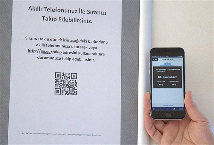Zehir, akıllı telefonlara yüklenen barkod sistemi sayesinde hastane koridorlarına asılan ilanlardaki karekodu okutarak TC kimlik numarasını giren hastalara, tüm birimlerdeki sırası hakkında her 10 saniyede bir güncellenen bilgilerin aktarıldığını kaydederek, "Poliklinik önlerinde hastaların sıra beklerken yaşadığı olumsuzlukları bertaraf etmek ve daha konforlu bekleyiş sağlayabilmek için atılan adımda, akıllı telefonu olmayan vatandaşlarımız da 'http://gg.gg/takip' adresini kullanarak internet üzerinden sırasını takip edebilecek" diye konuştu.