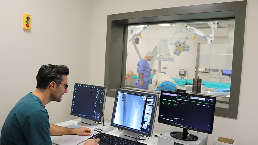 "Eskiden daha büyük kesilerle ameliyat yapılabilirken artık önemli yerleri keserek vücudun daha içerilerdeki kısımları anjiyo cihazı vasıtasıyla tedavi edebiliyoruz. Burası Türkiye'nin en gelişmiş hibrit ameliyathanesi. Burada her türlü açık kalp ameliyatını yapabilme imkanına sahibiz. Kalp, akciğer makinemiz var, cerrahi setlerimiz, her şey elimizin altında. Bu odada girişimsel olarak tedavi ettiğimiz bir hastayı herhangi bir komplikasyon geliştiğinde hemen açık ameliyata alabiliyoruz."