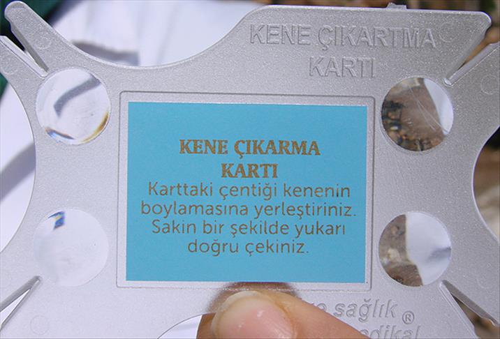 Havaların ısınmasıyla görülmeye başlayan kene ısırma vakalarına karşı halkın bilinçlendirilmesi için köy köy gezen sağlık ekipleri, vatandaşlara içinde kene çıkarma kartı, broşür ve eldiven bulunan ''kene çıkarma setleri'' dağıtıyor. Bugüne kadar 20 bin set dağıtan ekipler, nisan sonuna kadar 15 bin set daha dağıtmayı hedefliyor.