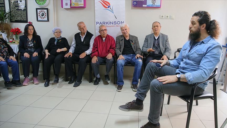 Parkinsona bağlı hareket yavaşlığı, güçsüzlük, denge bozuklukları, el ve kollarda titreme sorunları yaşayan hastalar, Parkinson Hastaları Derneği tarafından düzenlenen perküsyon terapisine katılıyor.
