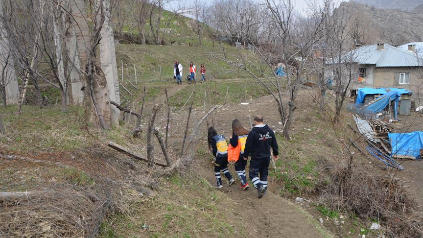 Hakkari'nin Yüksekova ilçesinde sağlık ekipleri, zorlu arazi şartları ve soğuk havaya rağmen ulaştıkları köylerde hastaları muayene ederek fedakarlık gösteriyor.