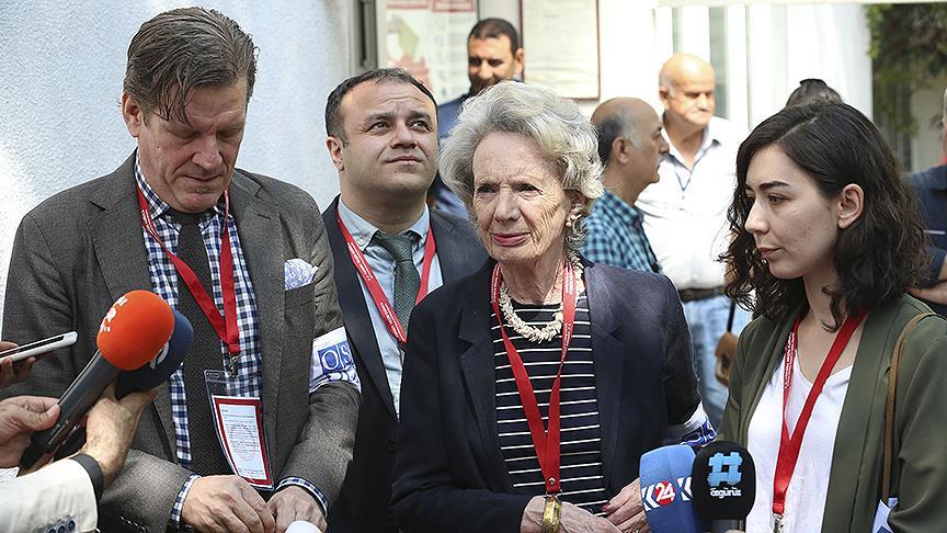 Avrupa Güvenlik ve İşbirliği Teşkilatı (AGİT) Demokratik Kurumlar ve İnsan Hakları Bürosu (DKİHB) Seçim İzleme Heyeti Başkanı Büyükelçi Audrey Glover, "AGİT heyetine yönelik herhangi bir engelleme yok. Her zaman kullandığımız metodolojide seçimleri gözlemlemeye devam ediyoruz. Bir sorun yaşamadık." açıklamasında bulundu.