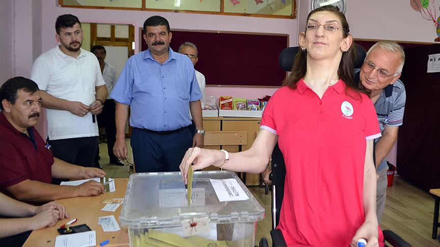 "Dünyanın 18 yaş altı en uzun boylu genç kızı" olarak Guinness Rekorlar Kitabı'na giren Weaver sendromu hastası Rumeysa Gelgi, annesi ve babasıyla Altın Safran İlkokulu'na gelerek 1047 numaralı sandıkta oyunu kullandı.