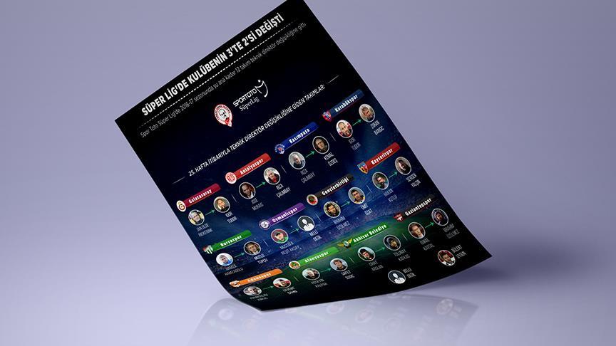Süper Lig ekiplerinden Galatasaray, Antalyaspor, Kasımpaşa, Kardemir Karabükspor, Bursaspor, Gençlerbirliği, Kayserispor, Aytemiz Alanyaspor, Adanaspor, Gaziantepspor, Akhisar Belediyespor ve Osmanlıspor, sezona başladıkları teknik direktörlerle yollarını ayırdı.