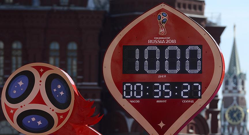 Moskova'nın merkezinde yer alan Manej Meydanı'na kurulan saat, turnuvanın açılış gününe kadar 1000 gün boyunca geriye doğru sayacak.