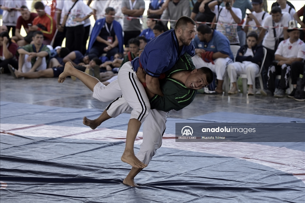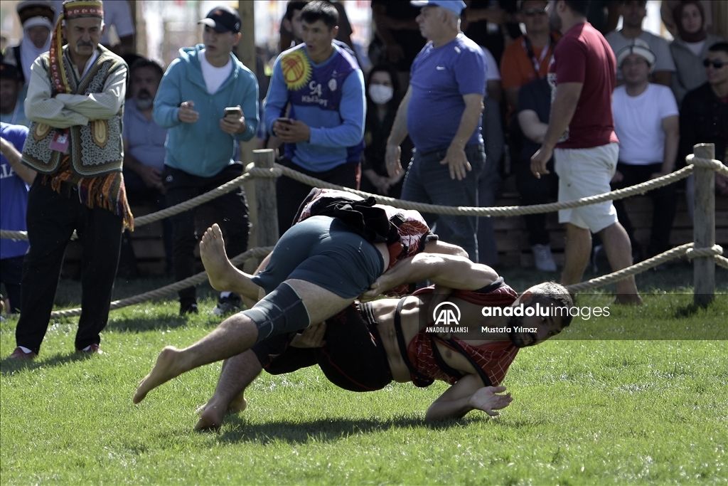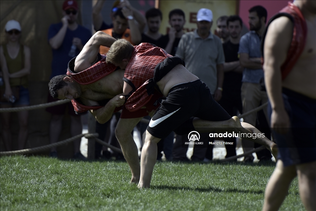 Çim üzerinde yapılan güreşlere, 19 ülkeden 65 sporcu katıldı.