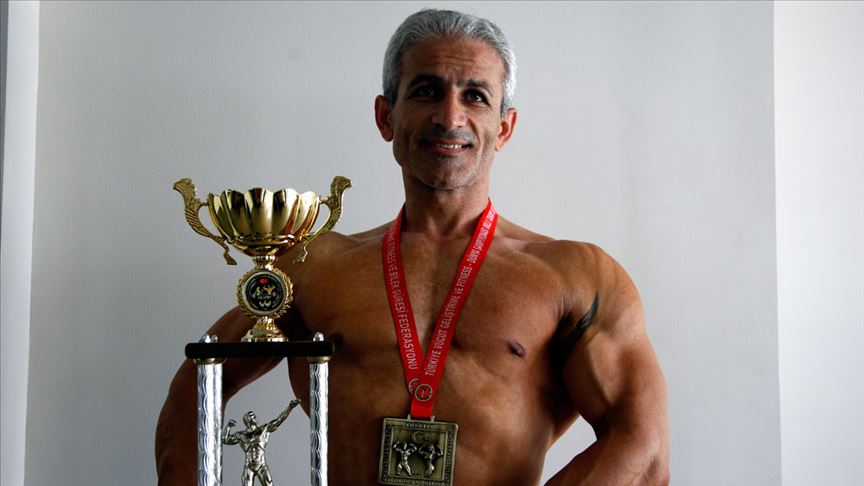 Hatay'da milli sporcu 44 yaşındaki beden eğitimi öğretmeni Özcan Özdemir, Slovakya'da düzenlenecek Fitness Dünya Şampiyonası'nda şampiyonluk hedefliyor.